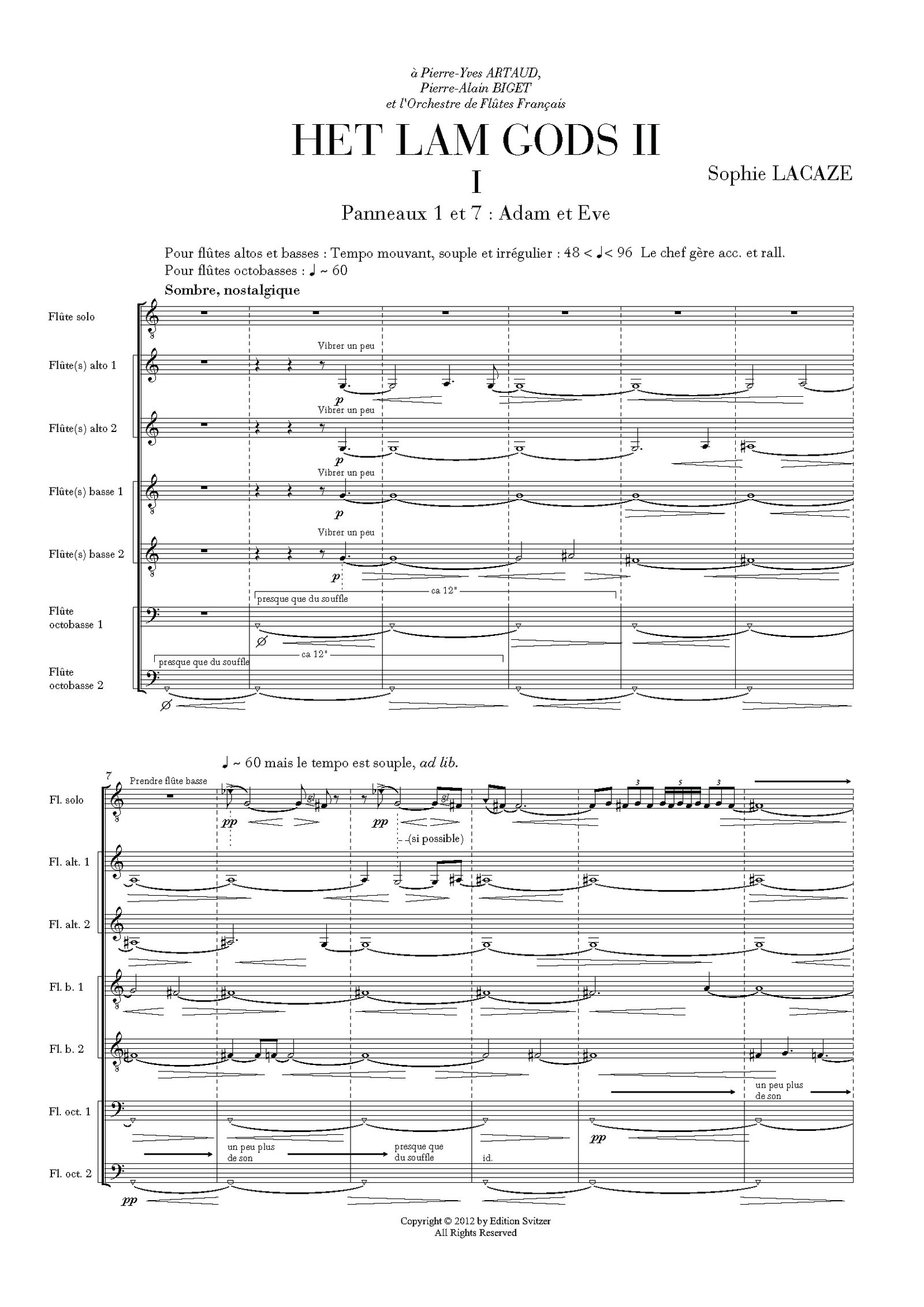 « … One of Lacaze’s most striking works so far is Het Lam Gods (‘The Lamb of God’), a vibrant contemplation on Hubert and Jan van Eyck’s Ghent altarpiece scored originally for string quartet (2005) and rescored for flutes. »