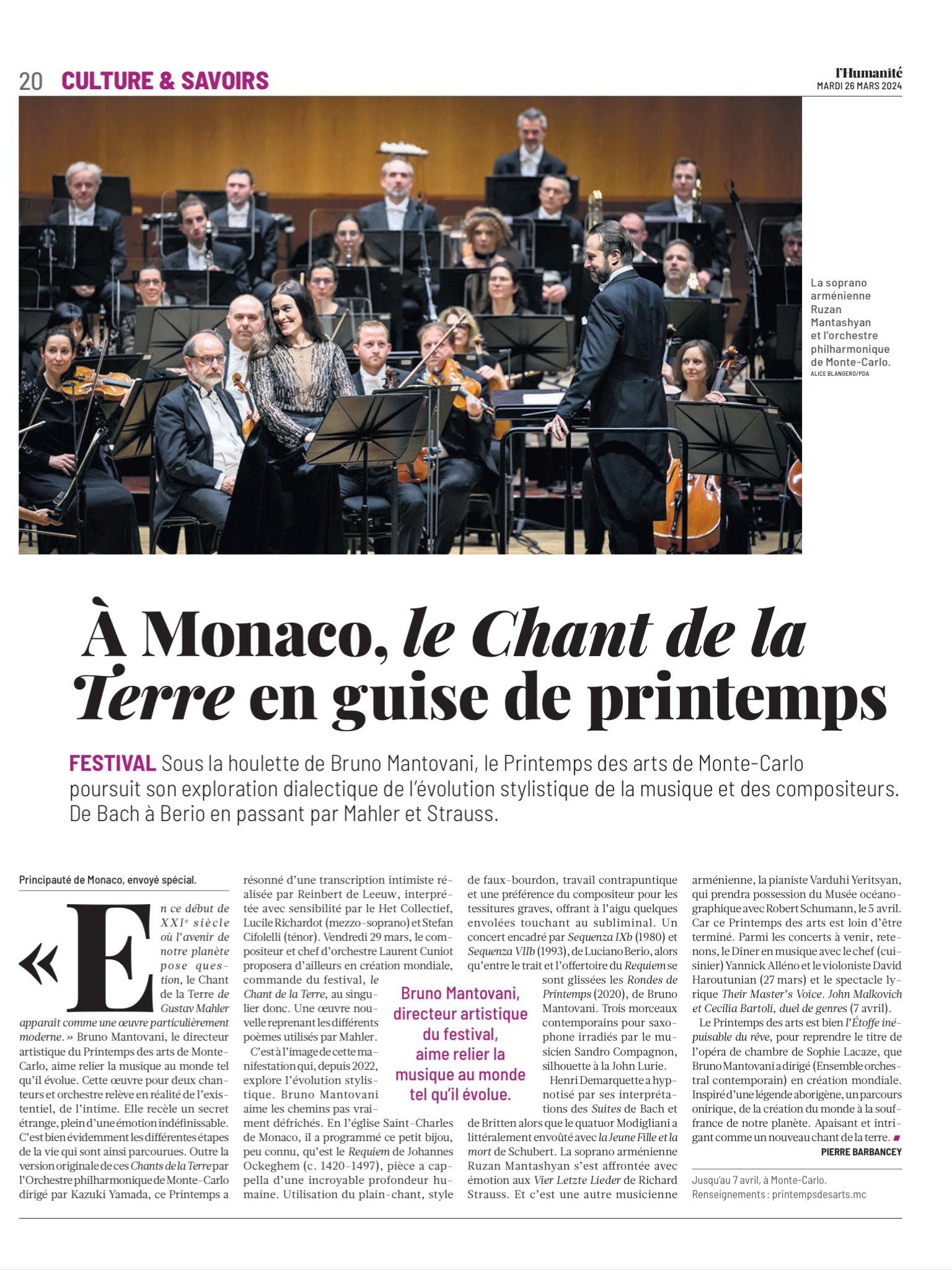 Création / First performance: Mars 2024 / March 2024, Printemps des Arts de Monte-Carlo, Monaco, par / by