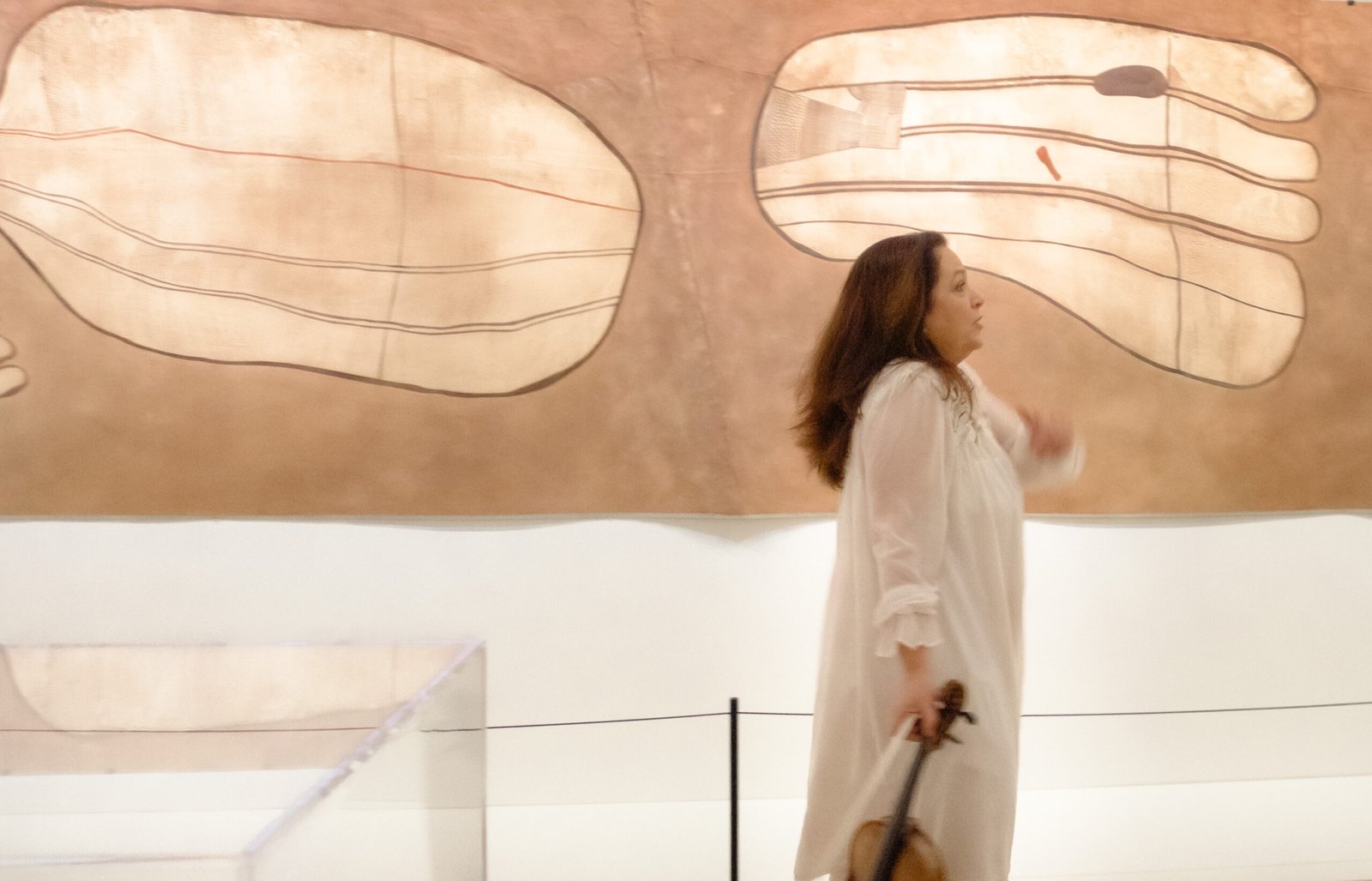 Softness, evanescence… The entire work seems to float weightlessly, presenting itself as a game—an instrumental game, like an improvisation. The five notes intertwine and resonate in harmony with the movements, gestures, and textures of ancestors’ paintings.
